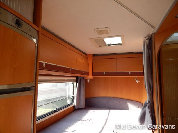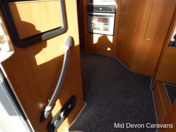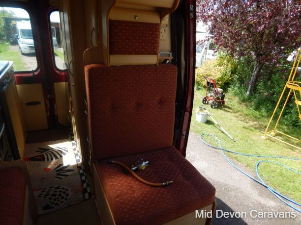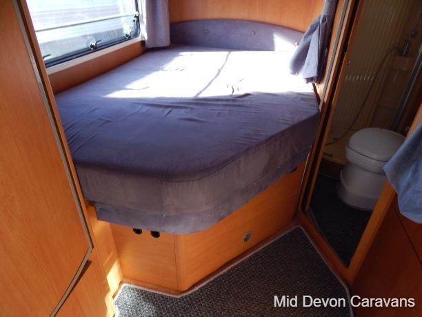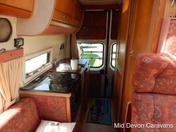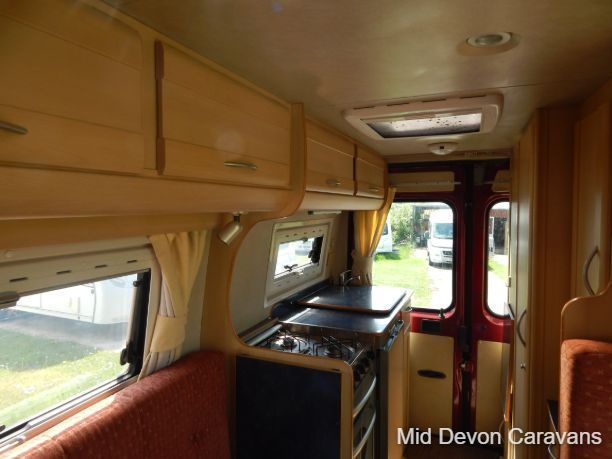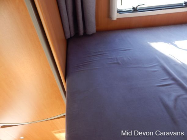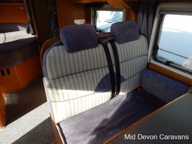 Made for two people, there is plenty of lounge space, thanks to wide, open, sideways-facing seats. The interior is well equipped with lights, and the quality of the wooden cabinets is high, 2 burner hob, truma boiler, heating, loads of storage under the bed access through the back doors, under-seat storage is fair, with external access to the seat base on the nearside.. Bed-making is simple and the bed is a decent size, with strong slatted-wood bases to ensure that plenty of air circulates underneath, thereby allowing the bases to remain free of condensation. A generous mattress depth of six inches ensures that the bed is firm but comfortable.