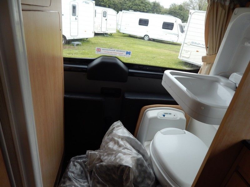 Also outside is a roof rack to simplify the fitting of a roof box, although to do so would defeat the point of buying a low-profile motorhome in the first place. Bed-making is simple and the bed is a decent size, with strong slatted wood bases to ensure that plenty of air circulates underneath, thereby allowing the bases to remain free of condensation. A generous mattress depth of six inches ensures that the bed is firm but comfortable.
