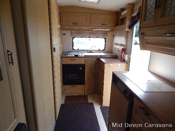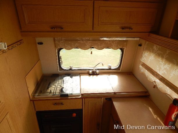 4 berth caravan Double glazed windows, blackout blinds and flyscreens including the main door. Very clean 4 burner hob, grille and oven. Various cooking items, plates and utensils. Thetford cassette toilet.