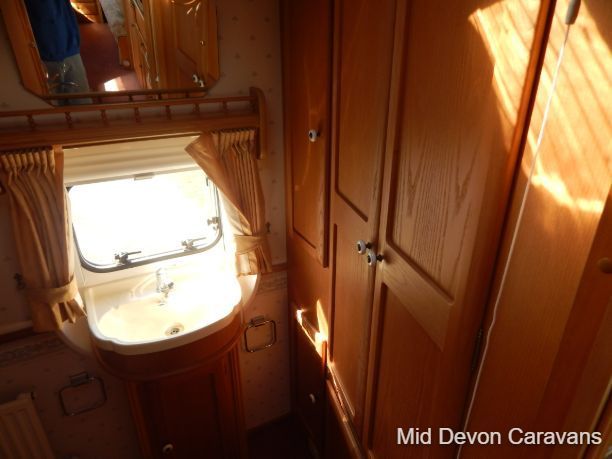 It has a very popular layout: the front of the caravan has 2 singles or a 'pull-out' double, and the dinette in the midsection can be transformed into bunk beds. The rear of the caravan has a very spacious bathroom with toilet, sink, vanity unit, and a large separate shower cubicle.